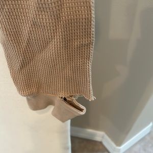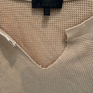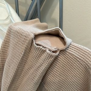 The RANGE KHAKI COLOR WAFFLE WEAVE LONG SLEEVE T-SHIRT W/DISTRESSED DETAIL SZ L