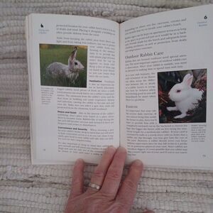 The Rabbit - An Owners Guide, 126 page, Hardcover book on how to care for a rabbit as a pet. It has very nice color pictures, The size is approximately 8.5" x 5.5" x .5 thick. It explains the history of the rabbit, the different rabbit breeds & explains how to choose a breed. How to care for one after bringing it home. How to make the rabbit an indoor pet. The book is pre-owned and in excellent condition.
