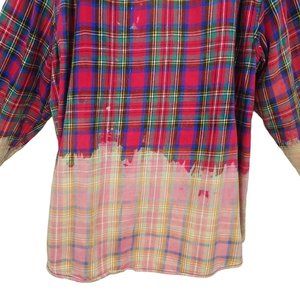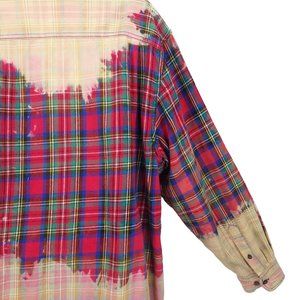 The Rack Brushed Cotton Bleach Tie Dye Button Front Shirt Top Size XL Plaid Long Sleeve