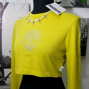 NWT long sleeve crop from Ragged Priest, color is a pale yellowish green. Size 10, the upper end of medium, but fits like a S/M