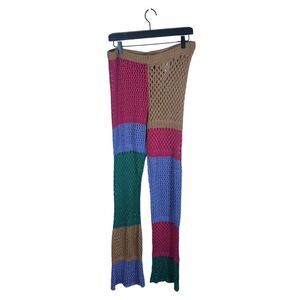 The Ragged Priest Atom Color Block Crotchet Knit Sheer Pants