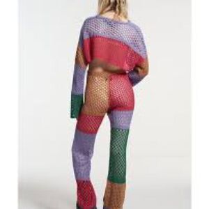 The Ragged Priest Atom Color Block Crotchet Knit Sheer Pants