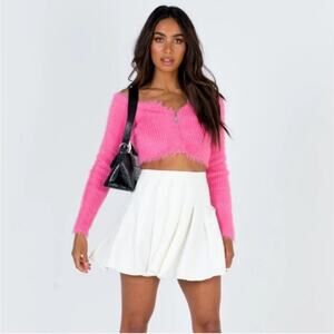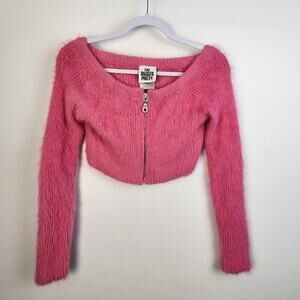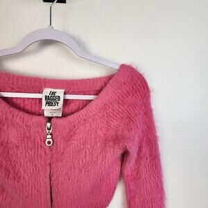 The Ragged Priest Bubblegum Pink Cropped Eyelash Knit Zip Front Sweater Small