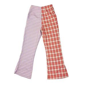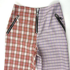 The Ragged Priest Drifter Flare Pants Size S Two Tone Plaid Zippers High Rise