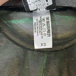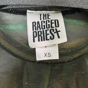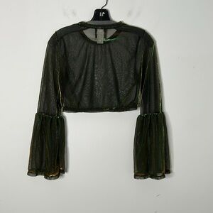 The Ragged Priest Green Shimmer Bell Sleeve Crop Top