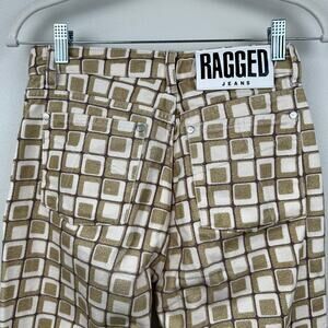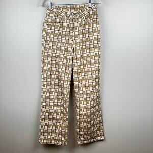 The Ragged Priest Jeans High Waist Pants Geometric Square Print Gold Cream 26 Boho Hippie