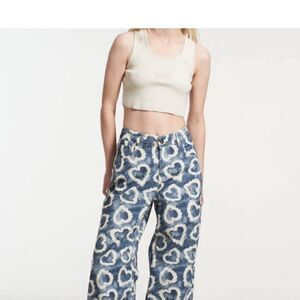 The Ragged Priest Jeans Lover Print Release Jeans Wide Leg High Rise Size 34