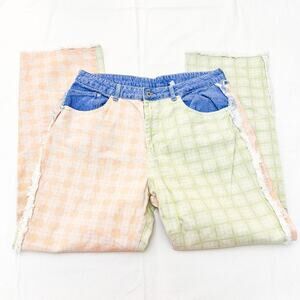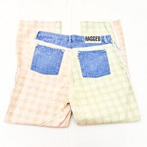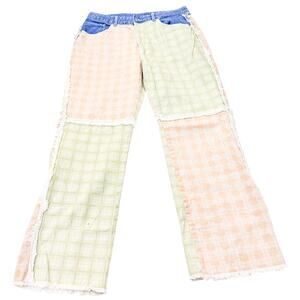 The Ragged Priest Jeans Patchwork Checkered Jeans Lime Green Salmon Blue Size 34