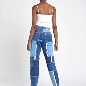 The Ragged Priest Jeans Patchwork Tapered Mom Jeans 30 Raw Hem