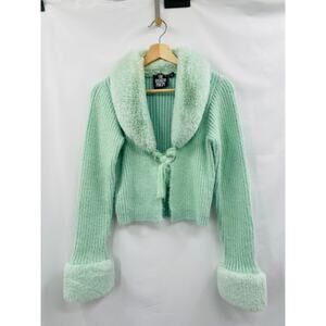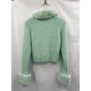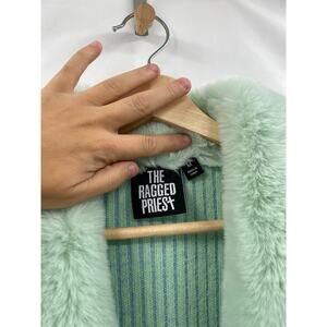 The Ragged Priest Mint Green Faux Fur Cardigan sweater