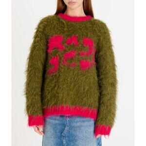 The Ragged Priest - Moss Knit Brushed Jumper Sweater in Green & Pink