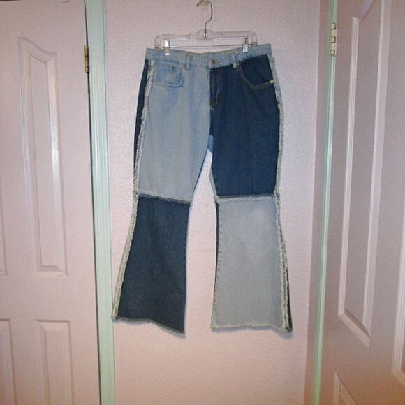 The Ragged Priest Patchwork Jeans Size 34 Bell Bottom Hippie Trip 90s Rave Y2K