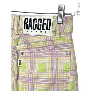 The Ragged Priest Plaid Cargo Utility Jeans Pastel Purple Green Womens 24 Cotton