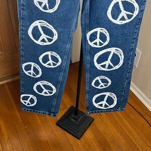 The Ragged Priest relaxed jeans in bleach heart Peace print NWT Size 24