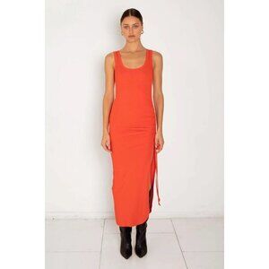 The Range Alloy Rib Cinched Bodycon Midi Dress Fuego Red Orange Womens Medium