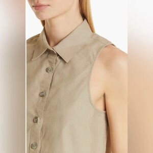 A lightweight cotton twill shapes this sleeveless shirt finished with a contemporary
