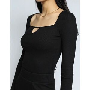 An alluring keyhole bring a chic update to this textured rib knit top featuring a trend-right square neck.