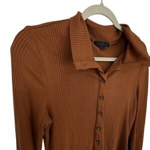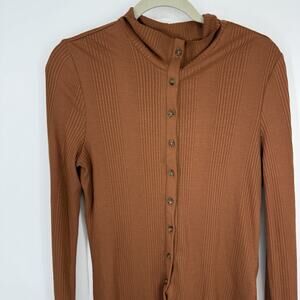 The Range Division Rib Button Up Turtleneck size Large in Whiskey Brown