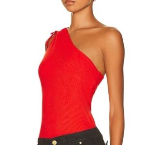 The Range Red Ribbed Knit One Shoulder Bodysuit Top Size Small