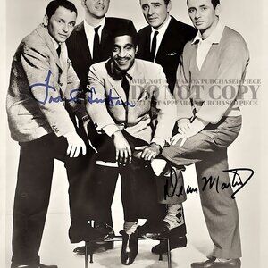 Description: Stunning portrait of The Rat Pack: Frank Sinatra, Peter Lawford, Sammy Davis Jr, Joey Bishop and Dean Martin. Photographed in 1960 to promote their Las Vegas Residency. Brilliant one-of-a-kind piece of Americana and music history.