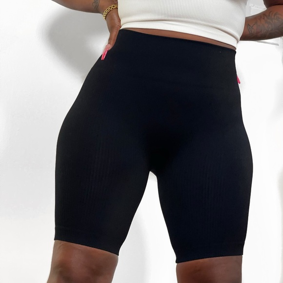 The Raya Ribbed Biker Shorts - Black