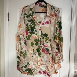 The Refinery Tan Floral Button Up Tunic Top Size 3X