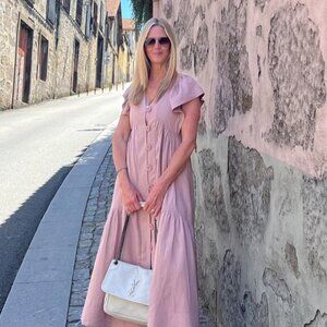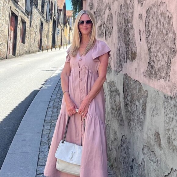 The Reneé Flutter-Sleeve Linen Button-Front Midi Dress, Mauve XS