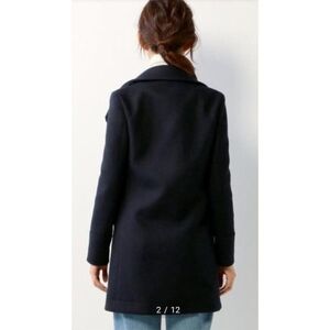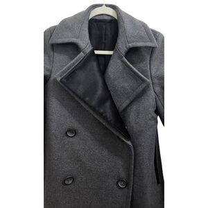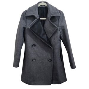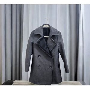 The Reracs peacoat is a stylish wool coat for women in a size 36/US S. It comes in a sophisticated gray color and features a classic pea coat style.