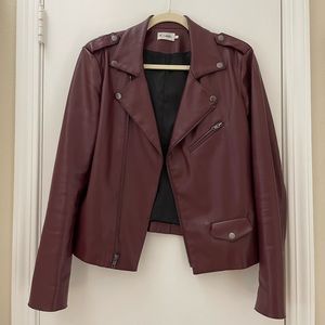 The Reset R Label Burgundy Vegan Leather Classic Moto Jacket - Size S