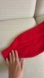 No noticeable wear or damage. Beautiful rich red and incredibly soft thick wool knit. I wanted to love it but the style didn’t suit me.