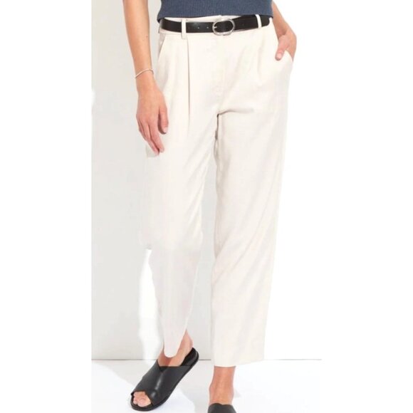 The Reset Women's Size M Pleated Trousers R Label Beige Lyocell Cropped Pockets