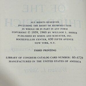 This third printing of "The Rise and Fall of the Third Reich" offers an in-depth historical account of Nazi Germany, authored by William L. Shirer. A significant work for history enthusiasts and scholars alike.