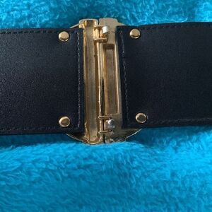 Gold tone double clasp vintage Ritz genuine leather belt size M 29.5 in. long
