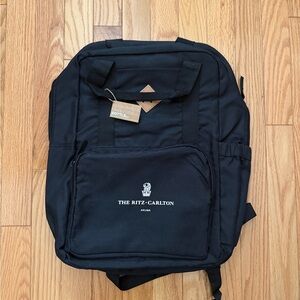 Stylish black backpack featuring The Ritz-Carlton Aruba logo. Perfect for travel or daily use. Brand new with tags. Never used.