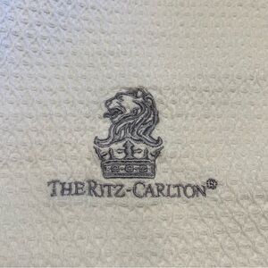Luxurious white robe with The Ritz-Carlton logo. Perfect for a touch of elegance.