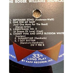 The Roger Williams Showcase Vinyl Record 33 1/3 RPM Kapp Records KW-900 Album