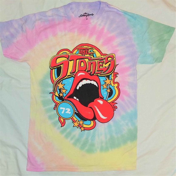 The Rolling Stones 1972 Tongue Logo Tie Dye Official cotton T-Shirt 2XL XXL NWT