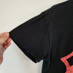 Get ready to rock with this double-sided graphic print T-shirt featuring the iconic Rolling Stone Lips, Tongues and Fangs. Made from comfortable jersey fabric, this unisex adults' tee is perfect for any season – whether you're hitting a concert or just hanging out with friends. The black shirt with a crew neckline and short sleeves is machine washable and easy to care for. This Rolling Stones T-shirt is a must-have for any music fan. The shirt is designed with a graphic print on both sides, making it a unique addition to your wardrobe. The shirt is available in size M and is a regular fit. So, whether you're looking to show off your love for the Rolling Stones or just want a comfortable and stylish tee, this shirt is perfect for you. In good pre-owned condition. Can be use for Unisex and Young Adult.