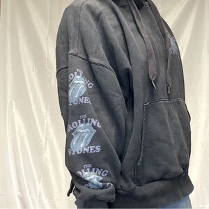 Cozy charcoal hoodie with iconic Rolling Stones logo. Ideal for casual wear excellent condition. American eagle brand size xs.
