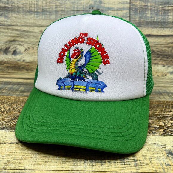 The Rolling Stones Mens Trucker Hat Green Snapback Dragon Mick Jagger Ball Cap