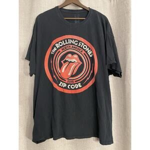 Show off your love for The Rolling Stones with this black Zip Code T-shirt from their 2015 North America tour. This shirt features the iconic band logo and is made of comfortable cotton material. Perfect for any fan, this regular fit shirt is available in size 2XL and has a solid pattern. The shirt has a crew neckline and short sleeves, making it the ideal choice for casual occasions. It is a must-have for any music enthusiast who wants to add a touch of style to their wardrobe.
