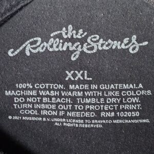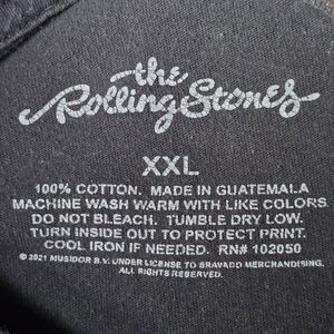The Rolling Stones North American 70s 1975 US Tour T-Shirt in Black, Size 2XL features a graphic print with the band's logo, giving it a vintage 70s vibe. Made of cotton with a crew neck and short sleeves, this regular fit shirt is suitable for all seasons, making it a versatile piece for summer, fall, and spring. Perfect for fans of The Rolling Stones looking for a classic and timeless addition to their wardrobe.