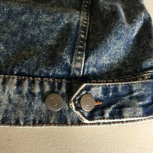 Pre-loved denim trucker, condition as shown! Lots of wear, stains, and still looks great. I'm not sure how much of it is user-wear vs factory distressing