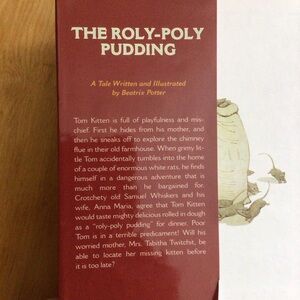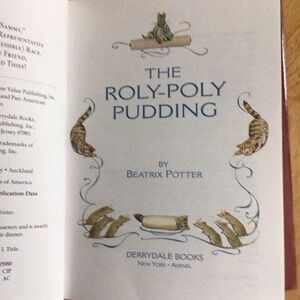 The Roly-Poly Pudding by Beatrix Potter. This book was published by Random House in 1996. This is a hardcover book. This book is partially illustrated. It measures approximately 7 1/4” long x 5 1/2” wide x 1/4” thick. Great vintage condition. Binding is in great shape, no writing in the book, no torn pages, no discoloration to the pages. Smoke free home.