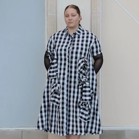 The Roma dress features stylish bows, a midi length, and convenient pockets.