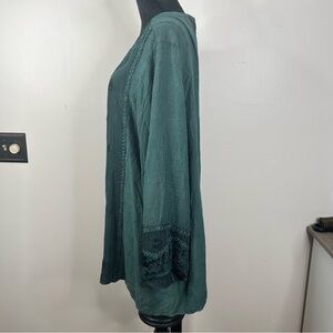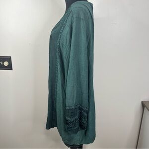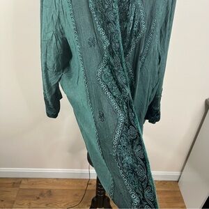 The Romeo & Juliet Collection Textured Floral Embroidered Kimono Emerald Green