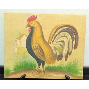 The Rooster Original Painting Folk Art 8 x 10" Unframed French Country Rustic