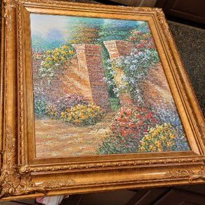 JUST REDUCED AGAIN @! Stunning. The original painter is not clear but it is authentic to the painter of this painting. We compare and Thomas's painting are 850+ Get this one for less than half price. Its from the Rose Garden. No returns nor refunds, so let us know what you need. It will be shipped and protected for you to receive it as you see it. Price is base on what in the market and condition. Thank you. Happy Bidding. Height 32" Length 28" is the Picture frame size.