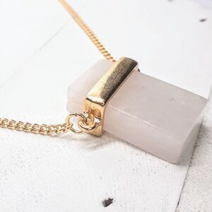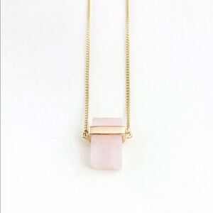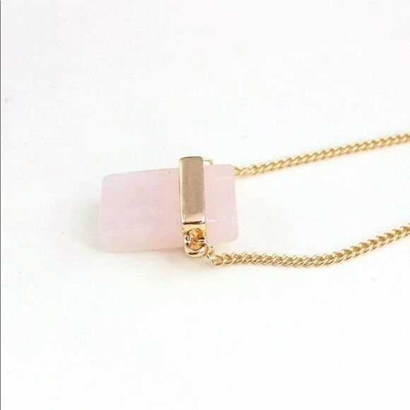 Gold Plated Long Chain With Rose Quartz pendant. Looks great any season any occasion.