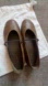 The Row classic soft ballet / Mary Jane silhouette. Slips on and has a delicate elastic strap over the instep. Made from supple nappa leather, they have round toes. Color is a chestnut brown with contrast black strap. Super super soft and lightweight. Not meant for heavy wear as they’re quite delicate. I’ve worn them barely a few x and there is moderate scuffing. They come with the dust bag but no box (as I left it during a move).